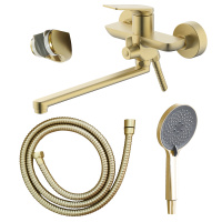 Смеситель для ванны Azario Lursy керамический картридж, длинный излив, с ручным душем, шланг 150 см, золото матовое (AZ-K1749MG)