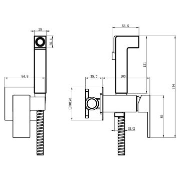 Гигиенический душ Azario Graves со смесителем, керамический картридж, скрытый монтаж, шланг 150 см, черный матовый (AZ-KFX03B)
