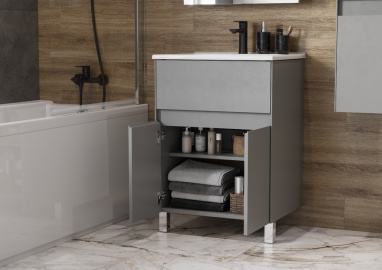 Тумба под раковину Aquaton Форест 60 см, универсальный монтаж, туманный серый (1A278201FR4D0)