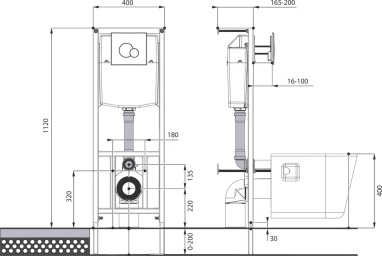 Инсталляция AZARIO для подвесного унитаза 400х160х1100, механическая, 3/6л (AZ-ИУ00001)