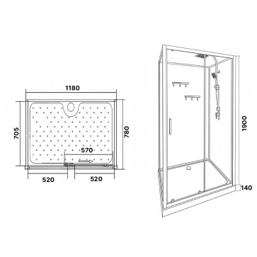 Душевая кабина Loranto 1180x780x2040 без крыши, правосторонняя, белое заднее стекло, поддон 14 см, прозрачное стекло 4 мм, профиль черный (CS-3010TM/W-120R)