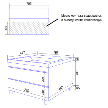 Комплект Azario Тумба Эстима 80/2Н 795х447х850 напольная, с раковиной Астория 80, белый глянцевый (CS00094596)