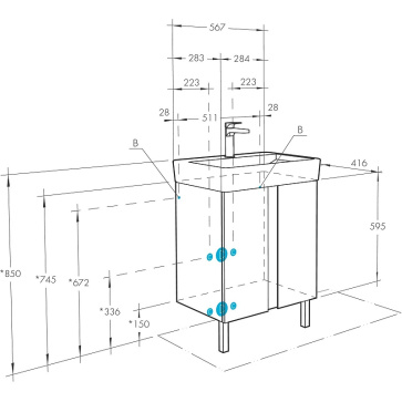 Комплект Тумба Стиль- 80 800х850х460 напольная, с раковиной Basic 80 (CS00070538)