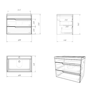 Комплект тумба Итана Sky 70 (600х450х560) подвесная, с раковиной Clarissa 70, белый глянец (CS00091693)