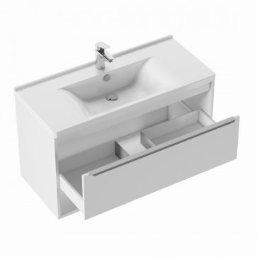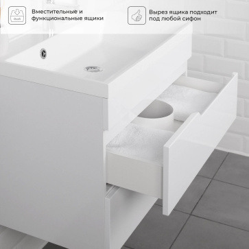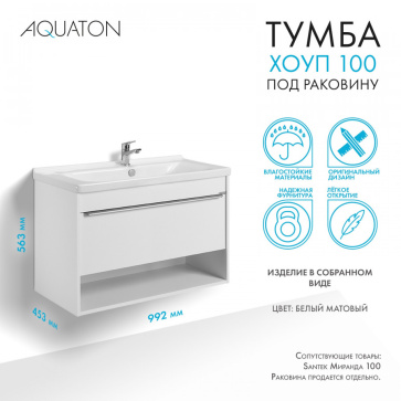 Тумба под раковину AQUATON Хоуп 100, подвесная, 1 ящик, белый матовый (1A287401HP2B0)